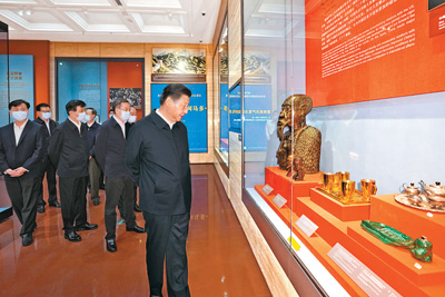 7月16日,中共中央總書記、國家主席、中央軍委主席習(xí)近平在中央禮品文物管理中心參觀“友好往來 命運與共——黨和國家領(lǐng)導(dǎo)人外交活動禮品展”。新華社記者 李學(xué)仁 攝