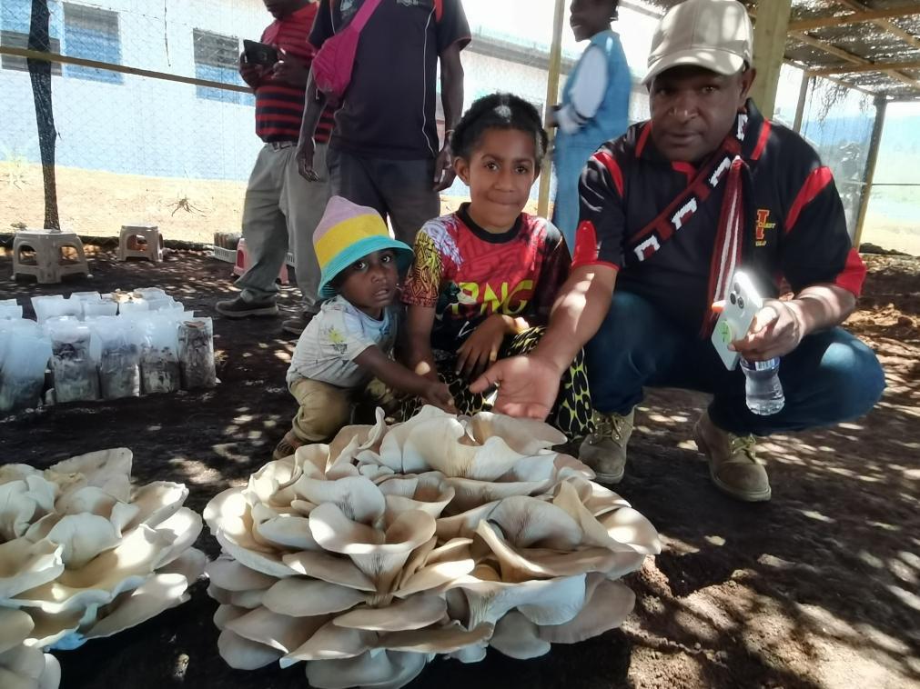 △2025年9月29日,在巴布亞新幾內(nèi)亞東高地省首府戈羅卡市,當?shù)孛癖妳⒂^中國援巴布亞新幾內(nèi)亞菌草旱稻項目永久性示范基地。