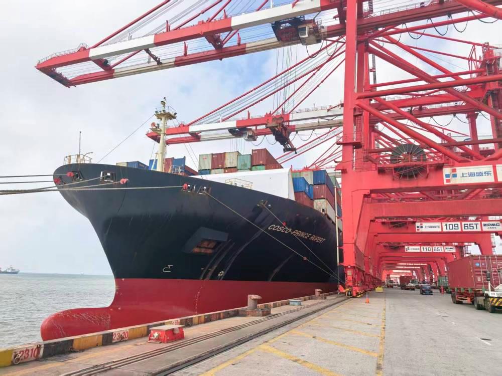 △2025年10月15日,上海洋山深水港,首批來自秘魯錢凱港的進(jìn)博會展品順利卸貨。