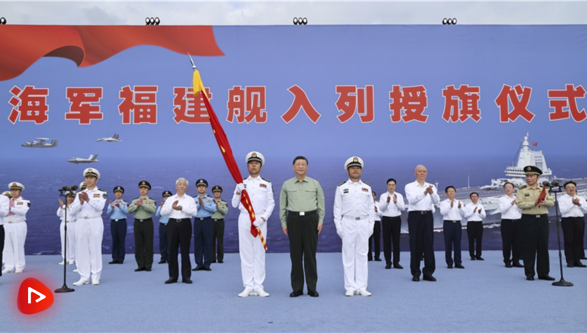 我國第一艘電磁彈射型航空母艦福建艦入列授旗儀式5日在海南三亞某軍港舉行。中共中央總書記、國家主席、中央軍委主席習(xí)近平出席入列授旗儀式并登艦視察。