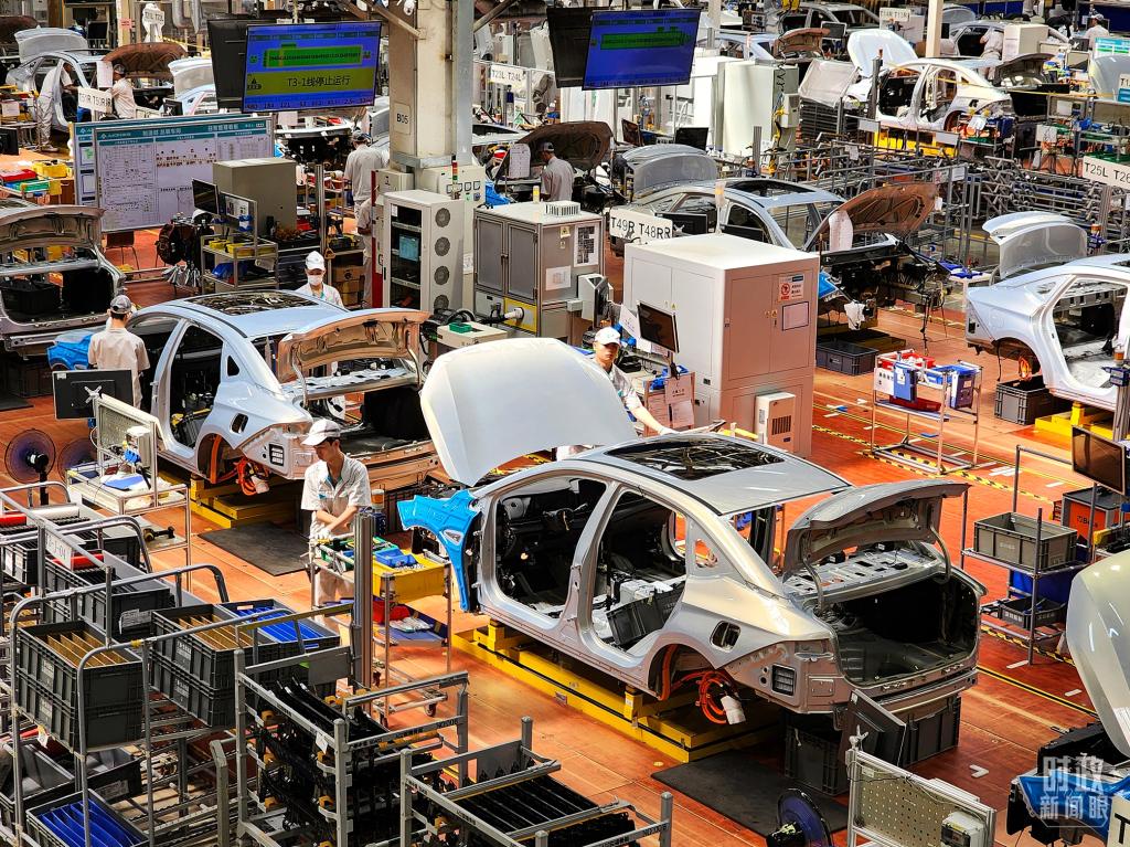 △國(guó)內(nèi)一家車(chē)企制造車(chē)間的新能源汽車(chē)生產(chǎn)線(xiàn)。(圖/視覺(jué)中國(guó))