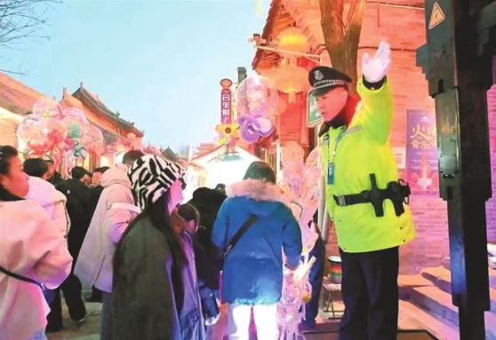 為防止古城局部聚集,忻州市公安局忻府分局實(shí)行“定點(diǎn)值守+流動(dòng)巡邏”相結(jié)合的勤務(wù)模式,將古城分為6個(gè)巡區(qū),安排了150名警力,疏導(dǎo)人流、解答各類咨詢,同時(shí)在拍照打卡等重點(diǎn)地段循環(huán)廣播提示安全注意事項(xiàng)。