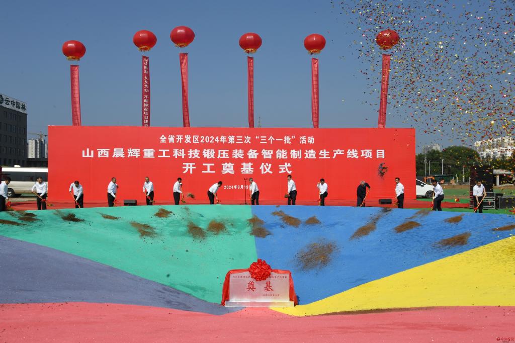 活動(dòng)期間,與會(huì)人員共同為“開工一批”重點(diǎn)項(xiàng)目——山西晨輝重工科技鍛壓裝備智能制造生產(chǎn)線項(xiàng)目培土奠基,現(xiàn)場觀摩了“投產(chǎn)一批”重點(diǎn)項(xiàng)目——一道新能源(忻州)有限公司14GW光伏電池生產(chǎn)基地項(xiàng)目。(張曄)