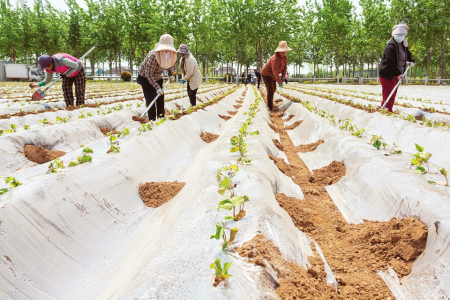 四月十一日,夏縣裴介鎮(zhèn)墻下村農(nóng)田里,農(nóng)民正在對紅薯秧苗實(shí)施圍土作業(yè)。眼下正是春耕春播時節(jié),當(dāng)?shù)剞r(nóng)民加緊實(shí)施護(hù)苗管理,確保紅薯增產(chǎn)增收。