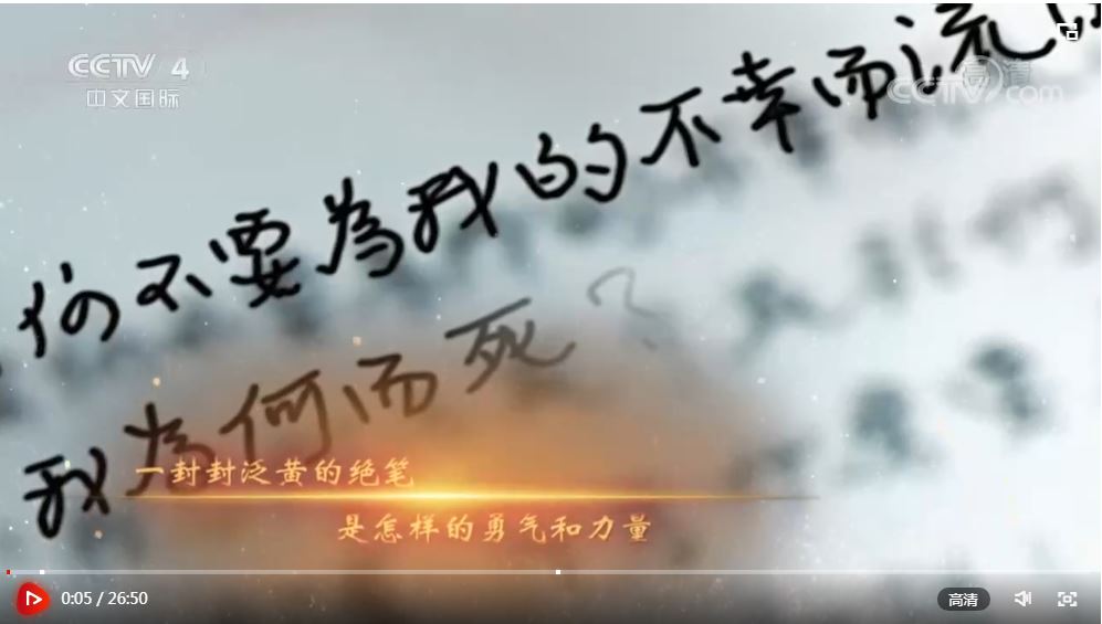 2022年清明之際,中央廣播電視總臺(tái)華語(yǔ)環(huán)球節(jié)目中心隆重推出六集專(zhuān)題紀(jì)錄片《絕筆》(第二季),解讀十四位共產(chǎn)黨員的絕筆,展現(xiàn)一批批革命先烈獻(xiàn)身中國(guó)革命、追求崇高信仰的犧牲精神。