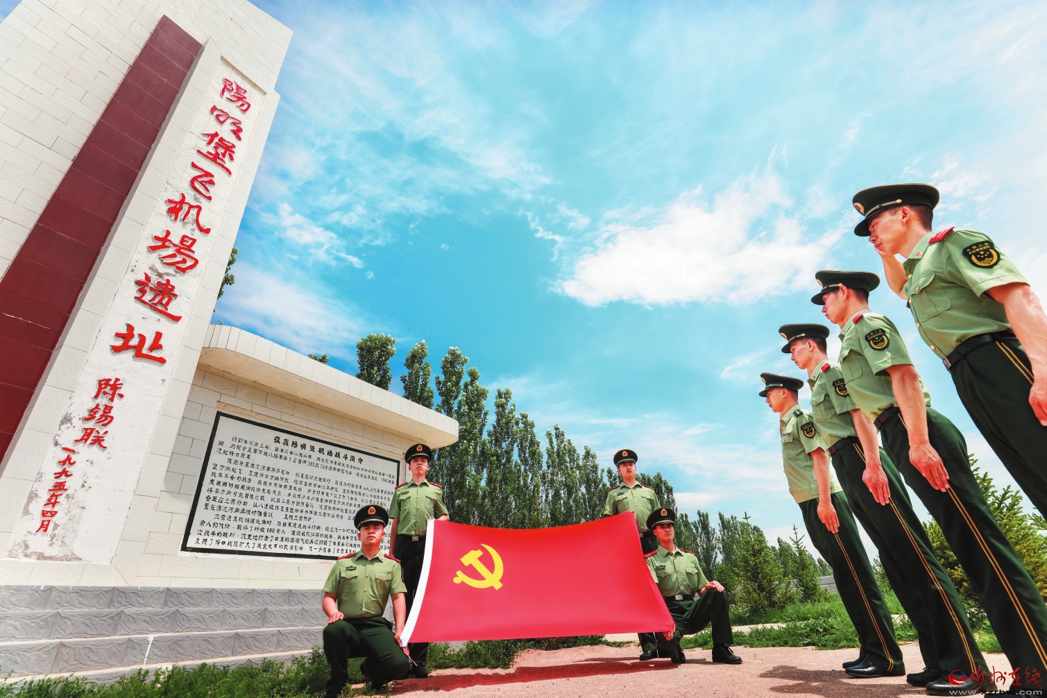 理想如磐,信念如鋼?!捌咭弧鼻跋?,武警山西總隊(duì)忻州支隊(duì)組織黨員在“陽明堡飛機(jī)場(chǎng)遺址”重溫入黨誓詞。 楊旭東攝