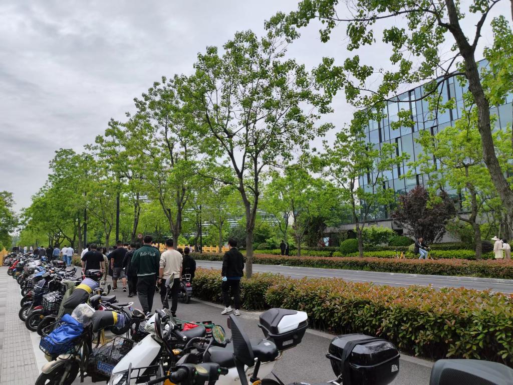 午休時(shí)間的張江街頭掠影。新華社記者董雪 攝