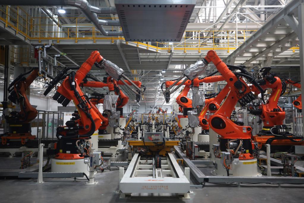 5月29日在合肥拍攝的大眾安徽模塊化電驅(qū)動平臺工廠車身車間一角。新華社記者杜瀟逸 攝