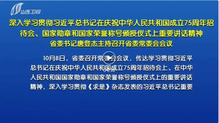 會(huì)議指出,習(xí)近平總書記在慶祝中華人民共和國(guó)成立75周年招待會(huì)上的重要講話,總結(jié)回顧75年來中國(guó)共產(chǎn)黨團(tuán)結(jié)帶領(lǐng)全國(guó)各族人民不懈奮斗取得的偉大成就,對(duì)推進(jìn)中國(guó)式現(xiàn)代化作出重大部署、提出明確要求,為把這一前無古人的偉大事業(yè)不斷推向前進(jìn)提供了根本遵循。走好新的征程,要始終堅(jiān)持黨的領(lǐng)導(dǎo),深刻領(lǐng)悟“兩個(gè)確立”的決定性意義,增強(qiáng)“四個(gè)意識(shí)”、堅(jiān)定“四個(gè)自信”、做到“兩個(gè)維護(hù)”,持之以恒推進(jìn)全面從嚴(yán)治黨,確保黨中央各項(xiàng)決策部署在山西不折不扣落到實(shí)處。要始終堅(jiān)持中國(guó)特色社會(huì)主義道路,堅(jiān)定歷史自信,增強(qiáng)歷史主動(dòng),高舉改革開放旗幟,堅(jiān)定扛牢使命任務(wù),在推動(dòng)高質(zhì)量發(fā)展、深化全方位轉(zhuǎn)型上不斷取得新成效。要始終堅(jiān)持以人民為中心,牢記黨的根本宗旨和國(guó)家性質(zhì),樹立和踐行正確政績(jī)觀,用心用情用力辦好民生實(shí)事,努力讓全省人民在共同奮斗中共享改革發(fā)展成果。要始終胸懷兩個(gè)大局、心懷“國(guó)之大者”,自覺把山西工作放到黨和國(guó)家工作大局中來定位、謀劃和推進(jìn),為以中國(guó)式現(xiàn)代化全面推進(jìn)強(qiáng)國(guó)建設(shè)、民族復(fù)興偉業(yè)作出山西貢獻(xiàn)。