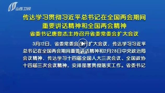 山西日報報道3月12日,省委常委會召開擴大會議,傳達學習習近平總書記在全國兩會期間重要講話精神和2月28日中央政治局會議精神,傳達學習十四屆全國人大三次會議、全國政協(xié)十四屆三次會議精神,安排部署貫徹落實工作。省委書記唐登杰主持會議。