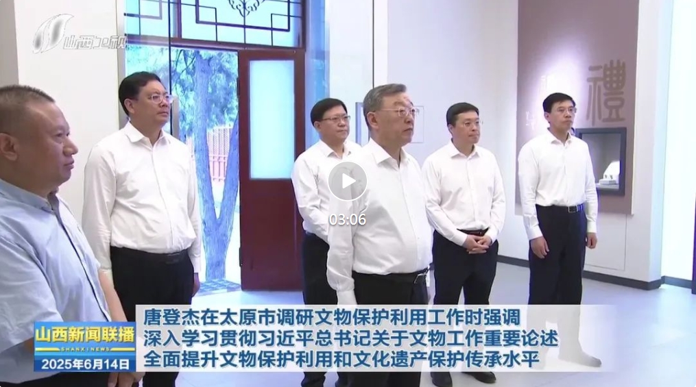 6月13日,省委書記唐登杰在太原市調(diào)研文物保護(hù)利用工作。他強(qiáng)調(diào),要深入學(xué)習(xí)貫徹習(xí)近平總書記關(guān)于文物工作重要論述和對(duì)山西工作的重要講話重要指示精神,以強(qiáng)烈的敬畏之心、珍愛(ài)之心、責(zé)任之心做好文物保護(hù)利用和文化遺產(chǎn)保護(hù)傳承工作,為建設(shè)中華民族現(xiàn)代文明作出山西貢獻(xiàn)。