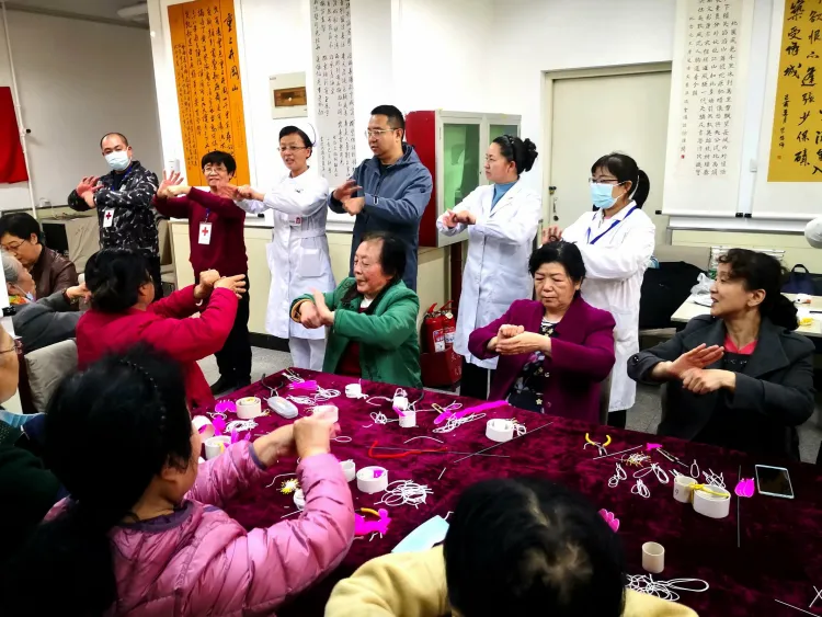 “我們還會定期為老年人開展美發(fā)服務(wù)、智能手機培訓(xùn)班、古琴班講座等活動,其中最受大家歡迎的還是我們科室成員自創(chuàng)開發(fā)的健腦手指操?!鄙结t(yī)大二院老干部科科長李曉峰介紹,“手指操”創(chuàng)編出來后,每天下午在大院廣場上,有的高齡老人坐著輪椅來做操,有的老人在家里隔著玻璃做操,可謂是風(fēng)靡一時。這項活動除了能鍛煉老年人的手眼協(xié)調(diào)能力、專注力和記憶力,還能延緩?fù)嘶俣取?/p>