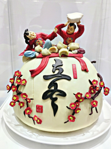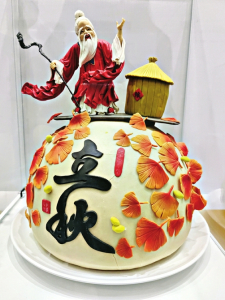 展覽的中心位置陳列著一件名為“龍騰盛世”的巨型霍州花饃作品,這件約2.5米高的作品,以中華龍為主題,象征著民族的繁榮與昌盛,是本次展覽中最大的一件作品。該作品與現(xiàn)場(chǎng)年饃、喜饃、壽饃、禮饃等4組作品代表霍州花饃的巔峰之作。