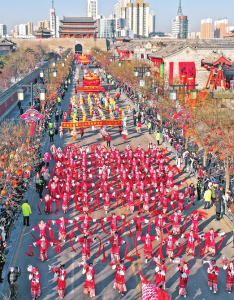 2月9日,民間藝人在平遙古城內(nèi)表演傳統(tǒng)民俗社火,喜迎元宵佳節(jié)。梁生仁攝
