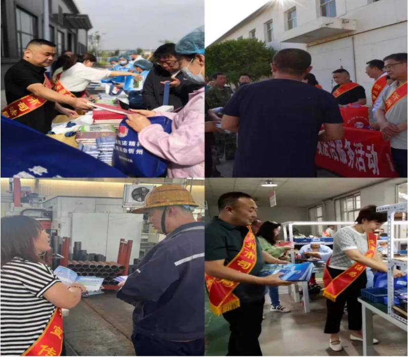 法律服務團向企業(yè)管理人員及職工發(fā)放《憲法》500本、《民法典》以及《民法典進企業(yè)》10000本、《合同法》5000本、《山西省優(yōu)化營商環(huán)境條例》4000本、以及《行政復議法》400本和其他法律法規(guī)書籍;發(fā)放公證證明材料清單1000本、100份便民聯(lián)系卡和法律政策明白卡,毛巾300份、圍裙300份、水杯300個、筆記本300本、雨傘100把等法治宣傳用品。同時,講解法律案例,宣講涉企公證、鑒定和仲裁知識,將法治宣傳與企業(yè)日常生產(chǎn)、經(jīng)營管理以及員工生活聯(lián)系起來,為企業(yè)發(fā)展營造良好法治環(huán)境。