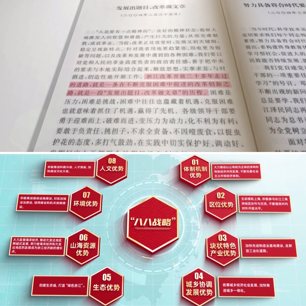 從經(jīng)濟(jì)體制改革的一馬當(dāng)先,到政治、社會(huì)、生態(tài)、文化等各領(lǐng)域改革的全面推開,伴隨著“八八戰(zhàn)略”的深入實(shí)施,改革的力量,推動(dòng)之江大地發(fā)生系統(tǒng)性、整體性的精彩蝶變。