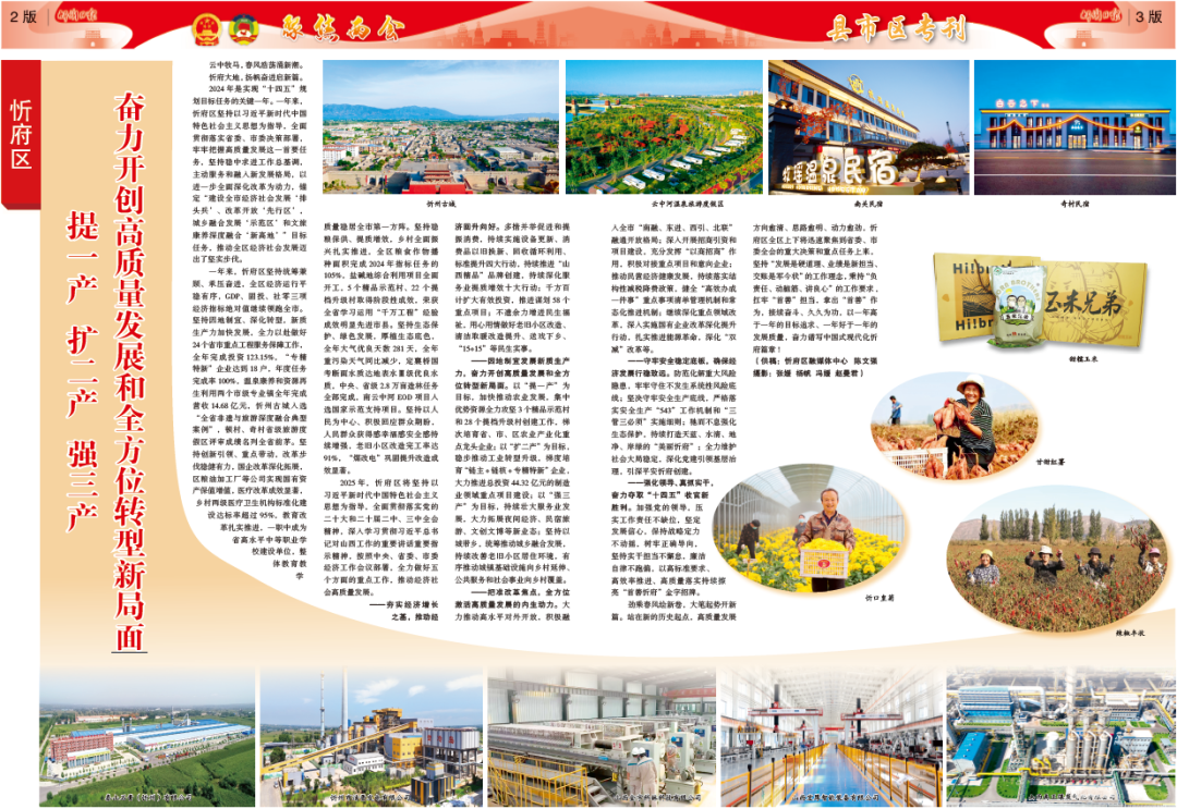 一年來,忻府區(qū)堅持統(tǒng)籌兼顧、承壓奮進(jìn),全區(qū)經(jīng)濟(jì)運(yùn)行平穩(wěn)有序,GDP、固投、社零三項經(jīng)濟(jì)指標(biāo)絕對值繼續(xù)領(lǐng)跑全市。堅持因地制宜、深化轉(zhuǎn)型,新質(zhì)生產(chǎn)力加快發(fā)展,全力以赴做好24個省市重點(diǎn)工程服務(wù)保障工作,全年完成投資123.15%,“專精特新”企業(yè)達(dá)到18戶,年度任務(wù)完成率100%,溫泉康養(yǎng)和資源再生利用兩個市級專業(yè)鎮(zhèn)全年完成營收14.68億元,忻州古城入選“全省非遺與旅游深度融合典型案例”,頓村、奇村省級旅游度假區(qū)評審成績名列全省前茅。堅持創(chuàng)新引領(lǐng)、重點(diǎn)帶動,改革步伐穩(wěn)健有力,國企改革深化拓展,區(qū)糧油加工廠等公司實(shí)現(xiàn)國有資產(chǎn)保值增值,醫(yī)療改革成效顯著,鄉(xiāng)村兩級醫(yī)療衛(wèi)生機(jī)構(gòu)標(biāo)準(zhǔn)化建設(shè)達(dá)標(biāo)率超過95%,教育改革扎實(shí)推進(jìn),一職中成為省高水平中等職業(yè)學(xué)校建設(shè)單位,整體教育教學(xué)質(zhì)量穩(wěn)居全市第一方陣。堅持穩(wěn)糧保供、提質(zhì)增效,鄉(xiāng)村全面振興扎實(shí)推進(jìn),全區(qū)糧食作物播種面積完成2024年指標(biāo)任務(wù)的105%,鹽堿地綜合利用項目全面開工,5個精品示范村、22個提檔升級村取得階段性成效,榮獲全省學(xué)習(xí)運(yùn)用“千萬工程”經(jīng)驗(yàn)成效明顯先進(jìn)市縣。堅持生態(tài)保護(hù)、綠色發(fā)展,厚植生態(tài)底色,全年大氣優(yōu)良天數(shù)281天,全年重污染天氣同比減少,定襄橋國考斷面水質(zhì)達(dá)地表水Ⅲ級優(yōu)良水質(zhì),中央、省級2.8萬畝造林任務(wù)全部完成,南云中河EOD項目入選國家示范支持項目。堅持以人民為中心、積極回應(yīng)群眾期盼,人民群眾獲得感幸福感安全感持續(xù)增強(qiáng),老舊小區(qū)改造完工率達(dá)91%,“煤改電”鞏固提升改造成效顯著。