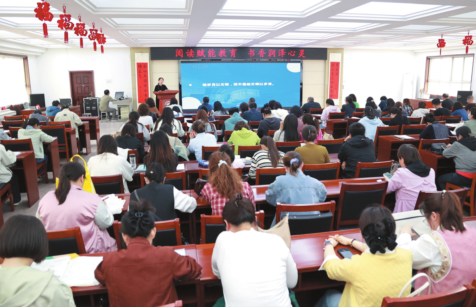 本報訊(記者王陽)為響應(yīng)全民閱讀號召,進(jìn)一步提升教師專業(yè)素養(yǎng),營造書香校園氛圍,近日,忻州市實(shí)驗(yàn)小學(xué)舉辦了“閱讀賦能教育書香潤澤心靈”教師讀書分享會。全體教師齊聚一堂,以書會友,暢談教育智慧,共享閱讀之樂。