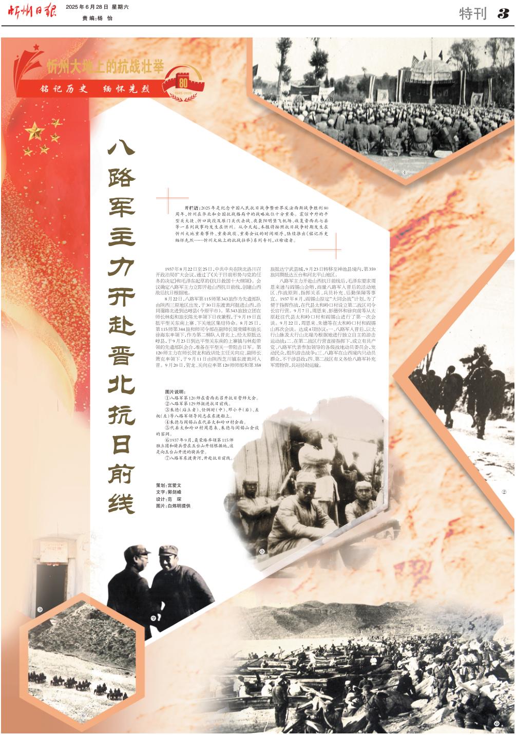 1937年8月22日至25日,中共中央在陜北洛川召開政治局?jǐn)U大會(huì)議,通過了《關(guān)于目前形勢(shì)與黨的任務(wù)的決定》和毛澤東起草的《抗日救國十大綱領(lǐng)》。會(huì)議確定八路軍主力立即開赴山西抗日前線,創(chuàng)建山西敵后抗日根據(jù)地。