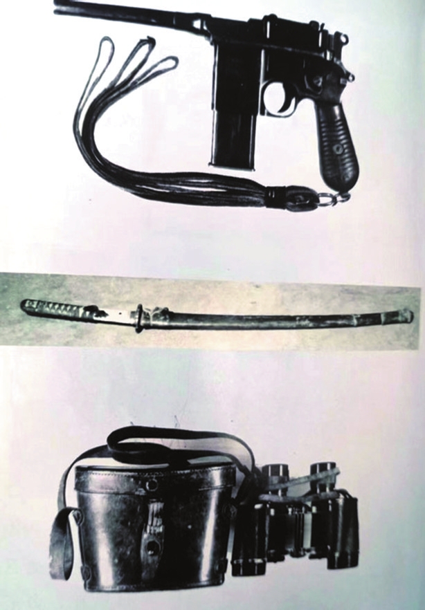 趙正午在與日寇和偽軍的戰(zhàn)斗中,使用最多的是三種武器,即手槍、大刀和望遠鏡。手槍,該槍型于1895年經(jīng)改裝后由一次性裝10發(fā)子彈發(fā)射變成20發(fā)。這種槍管長約140毫米,口徑7.63毫米。由于槍套是一個木盒,故又稱這種槍為“匣子槍”“盒子炮”,或“駁殼槍”。八路軍和游擊隊在抗戰(zhàn)時期廣泛使用。大刀,刀身采用鎳合金鋼材機械加工,刀身開設血槽,刀柄大部分為木質(zhì),全長101.8厘米。抗戰(zhàn)期間,日軍不少軍刀被我八路軍和游擊隊繳獲,成為我對敵作戰(zhàn)的武器之一。當年,趙正午在戰(zhàn)斗中繳獲了一把這款軍刀。望遠鏡,德國于1920年前后研制生產(chǎn)的一種兩筒軍用望遠鏡,具有較高的放大倍數(shù)和物鏡直徑,適合遠距離觀察和戰(zhàn)場偵察??箲?zhàn)初期流入我國,該望遠鏡長16厘米,寬11厘米。忻口戰(zhàn)役后,忻縣游擊隊在戰(zhàn)場上繳獲。