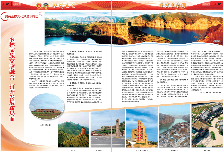 “十四五”以來,偏關生態(tài)文化旅游示范區(qū)始終堅持以習近平新時代中國特色社會主義思想為指導,全面貫徹黨的二十大及二十屆歷次全會精神,按照省市部署要求,堅定踐行綠色發(fā)展理念,深入實施“三綠”發(fā)展戰(zhàn)略,向新發(fā)力,逐綠前行,高質量發(fā)展駛入快車道。老牛灣、紅門口地下長城2個4A級景區(qū)成功創(chuàng)建,乾坤灣獲批省級旅游度假區(qū);長城一號旅游公路偏關老牛灣段入選全省旅游公路28個精品示范段之一;老牛灣村獲得“中國美麗休閑鄉(xiāng)村”和“農(nóng)家樂特色村”雙稱號,入選“中國慢生活休閑體驗區(qū)”,被中央宣傳思想文化工作領導小組評為第七屆全國文明村;水泉村獲評省級鄉(xiāng)村旅游重點村;黃河宿集入選首批山西省總工會職工療休養(yǎng)服務點名單。