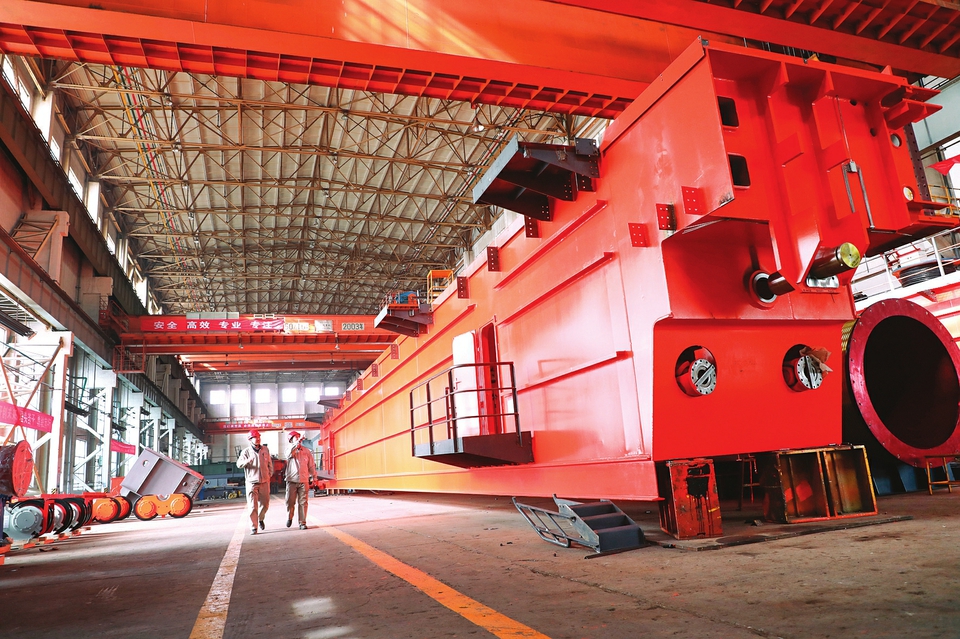 太重集團(tuán)起重機(jī)分公司車(chē)間,即將發(fā)往印度AMNS公司的450t鑄造起重機(jī)正在進(jìn)行拆車(chē)包裝作業(yè)。武劍峰攝